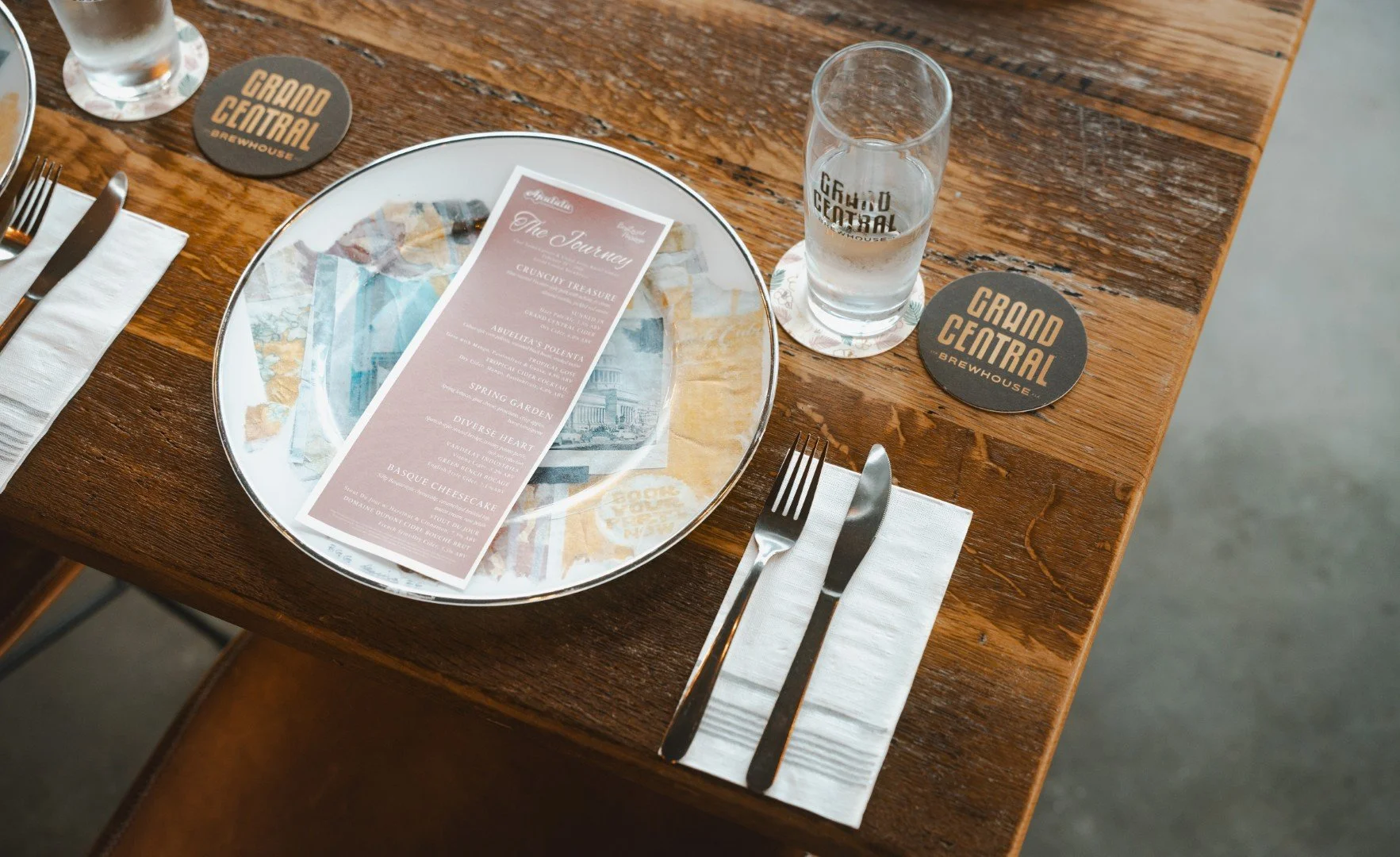 Guests enjoyed a five-course culinary experience thoughtfully paired with exceptional ciders along with beers from Grand Central Brewhouse. With Raciel’s artwork on display, the Stammtisch room transformed into an elegant, intimate setting.